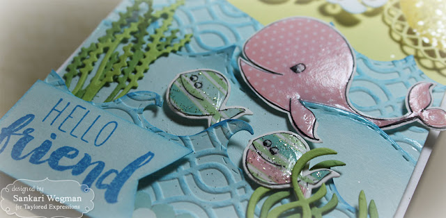I am so excited to share a card that I made using one of my favorite sets from Taylored Expressions called Under the Sea. I love the fun under the sea animals and fauna (is that a word for under the sea..?! hmm :).